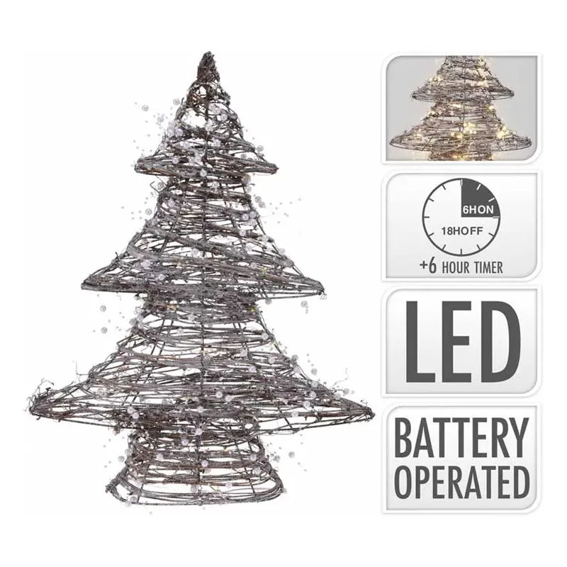 Božična jelka z biserčki, rjav ratan, z LED lučkami, 40LED, 50cm