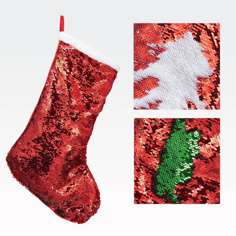 Ta čudovita božična nogavica je popolna za dodajanje sijaja in bleščic vašemu božičnemu okrasju. Nogavica je izdelana iz 100% poliestra in ima dolžino 40 cm, kar jo naredi za odličen dodatek k vaši božični dekoraciji.