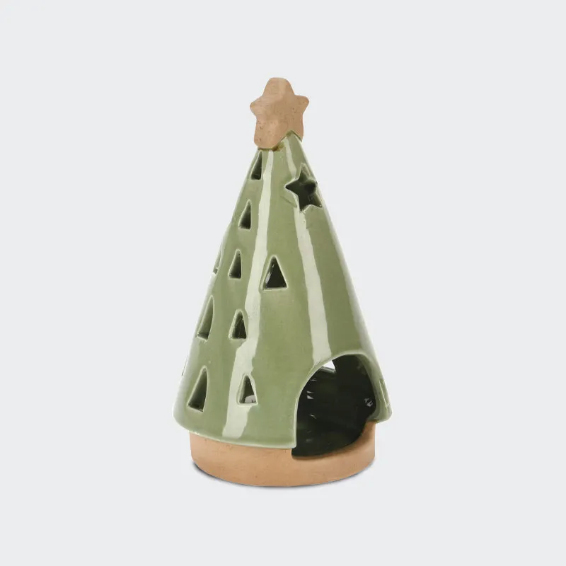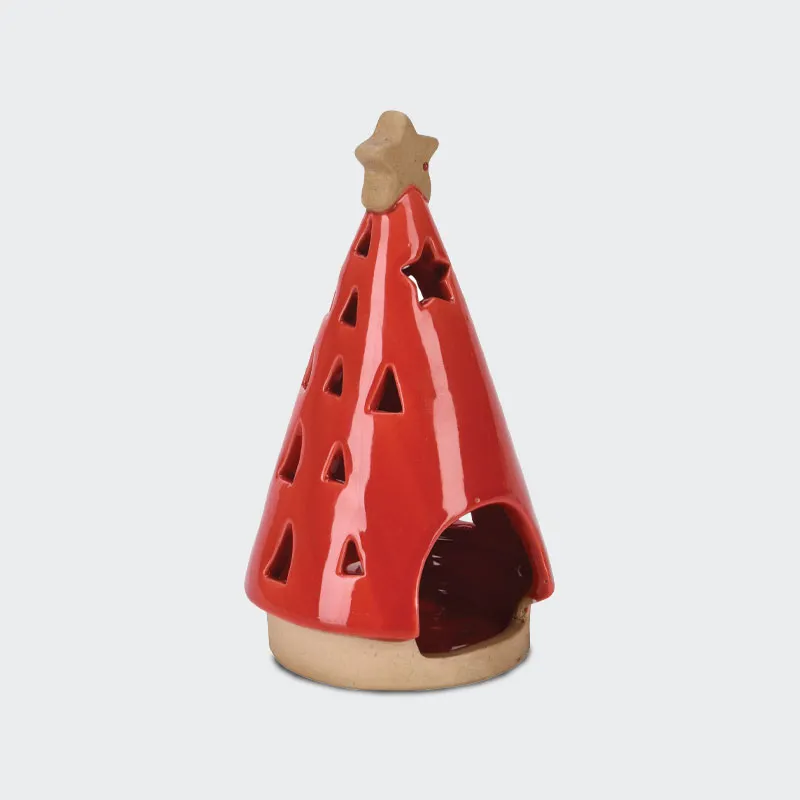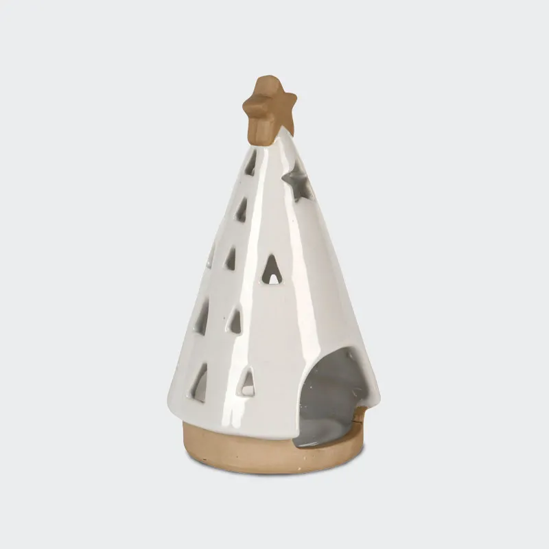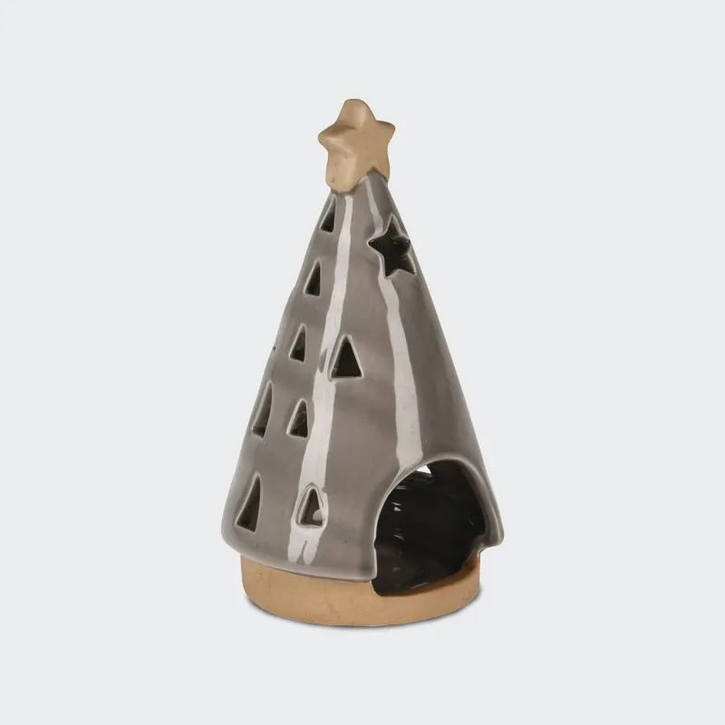 Svečnik za čajno lučko, v obliki božične smrekice, porcelan, 9x15cm, sort.