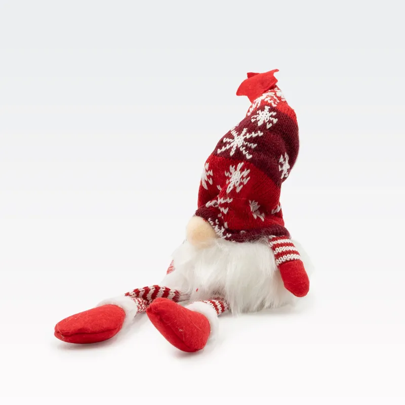 Palček brez okic, z rdečo kapo z božičnim motivom, mehkimi nogami, z LED lučko, poliester, 12x33cm