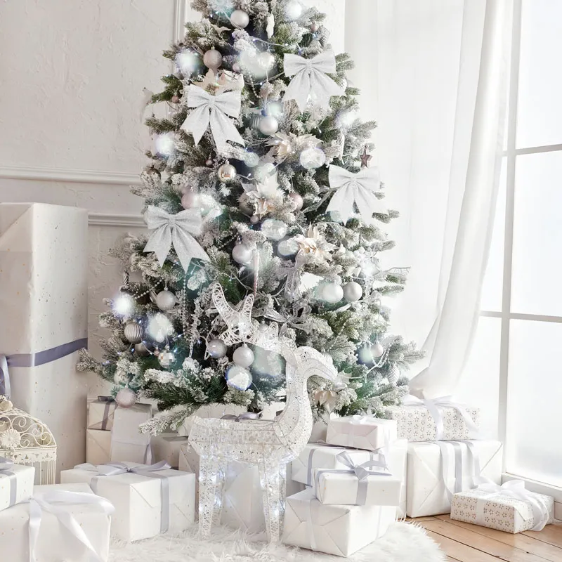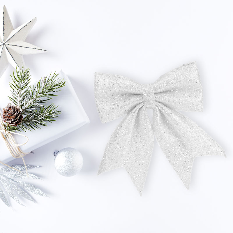 Elegantna pentlja v srebrni barvi bo razkošno dopolnila notranjo opremo in darila v pripravah na novo leto. Priročna kovinska zaponka se nahaja na hrbtni strani loka in vam omogoča, da ga pritrdite na katero koli površino ali vejo. Sve
