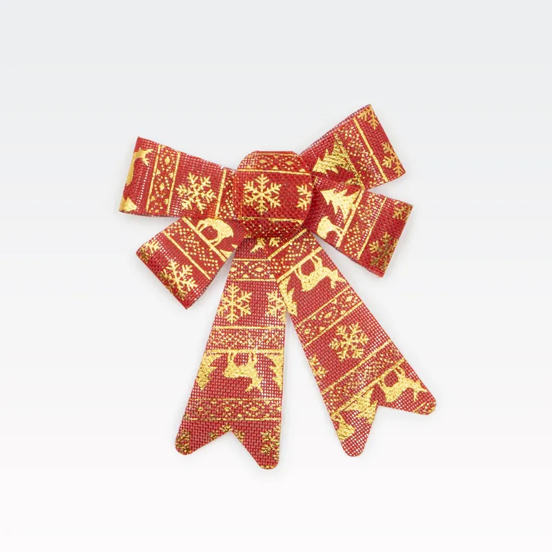 Pentlja božična, rdeča, poliester, 2/1, 16x14cm