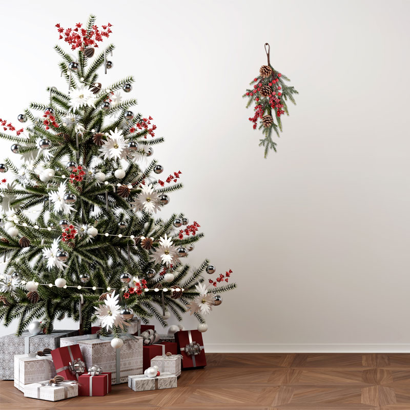 Dekorativna božična vejica z borovimi iglicami in gozdnimi rdečimi jagodami je edinstvena dekoracija, ki bo vsako novoletno dekoracijo naredila posebno. Božična dekoracija je primerna za različne vrste okraskov, kot so ikebane, novoletni in božični ven