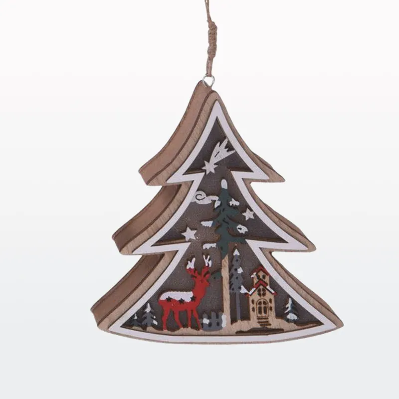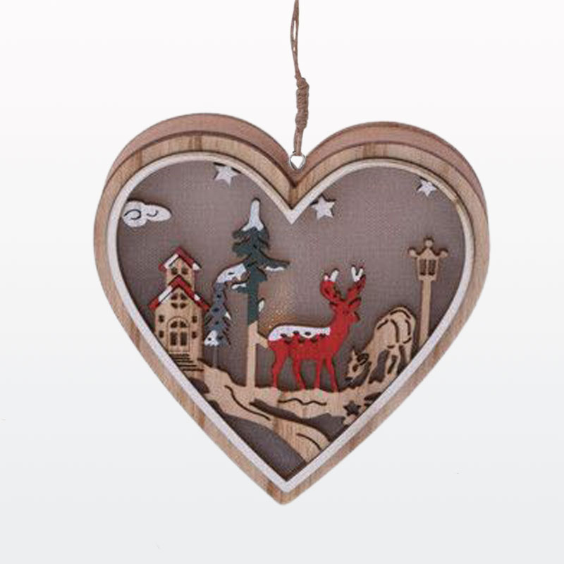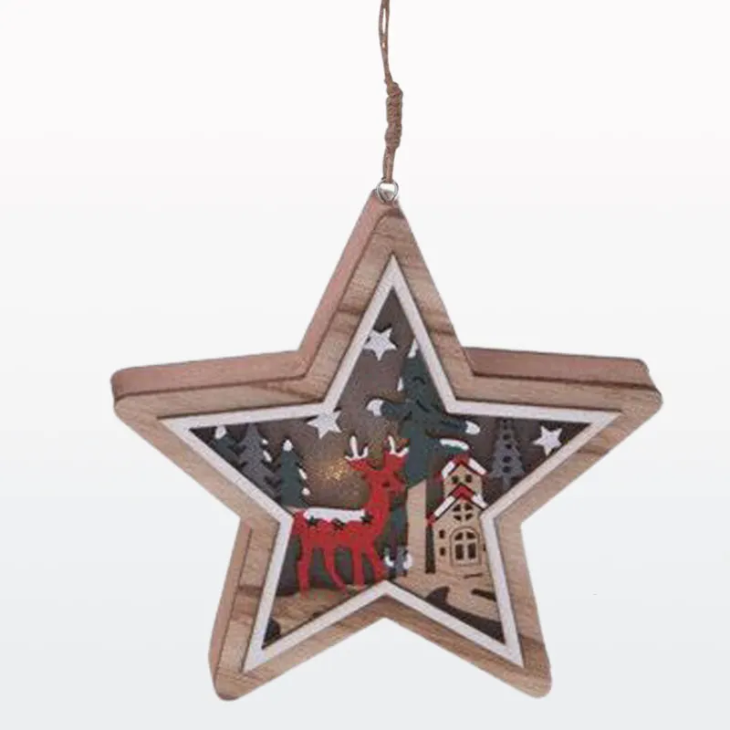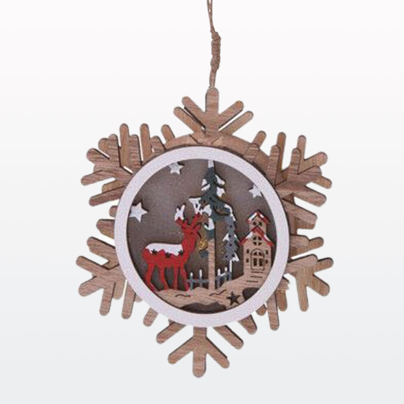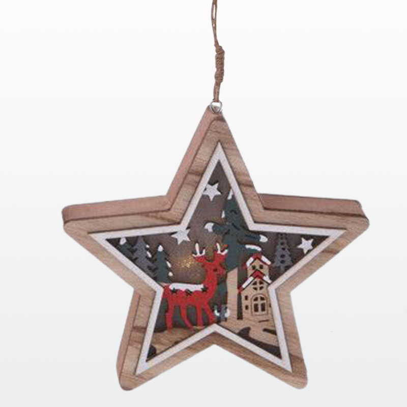 Božični obesek za smreko, lesen z LED lučko, 12cm, sort.