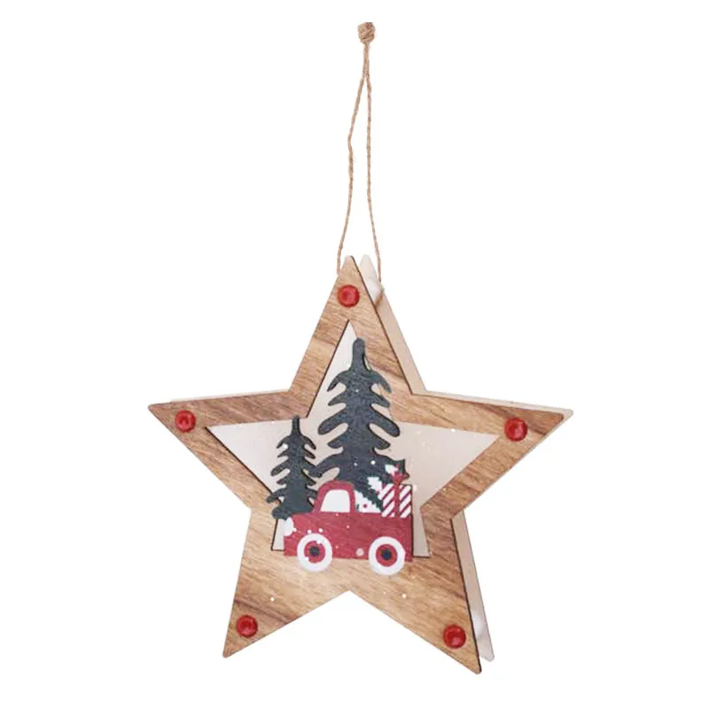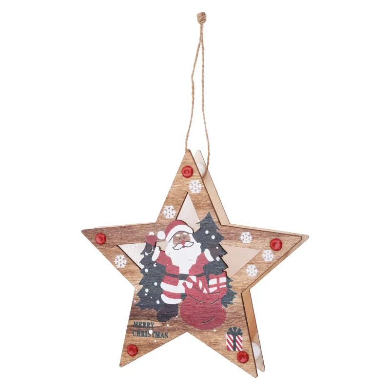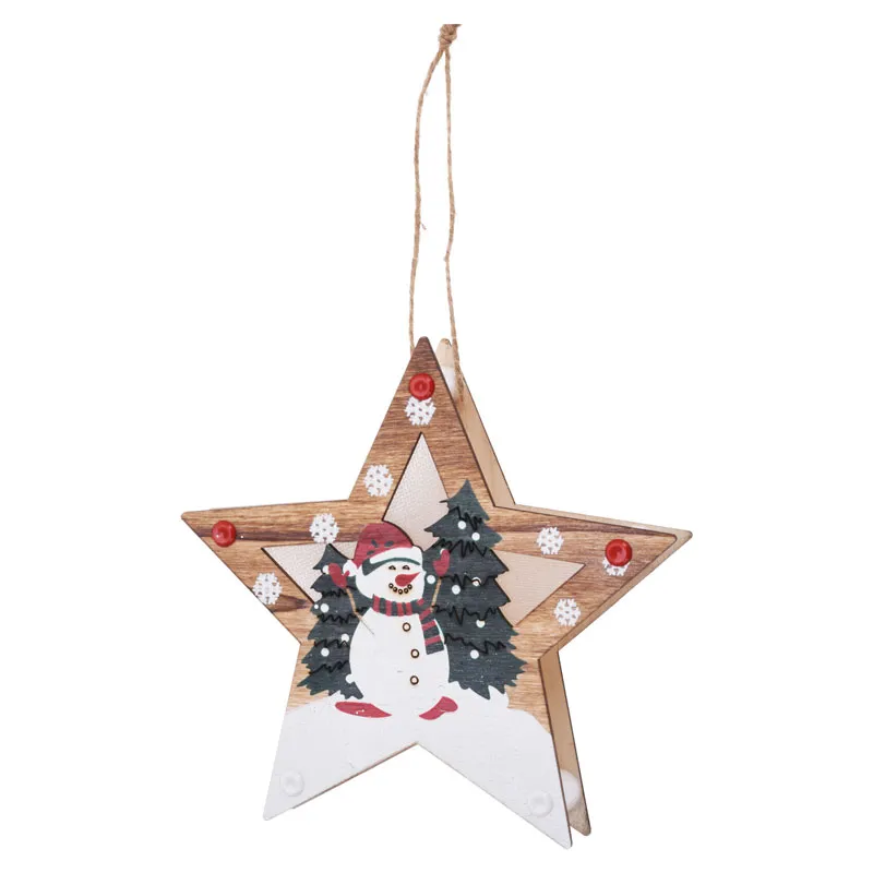 Obesek lesen, zvezda, z LED lučko, božični motiv, 16cm, sort.