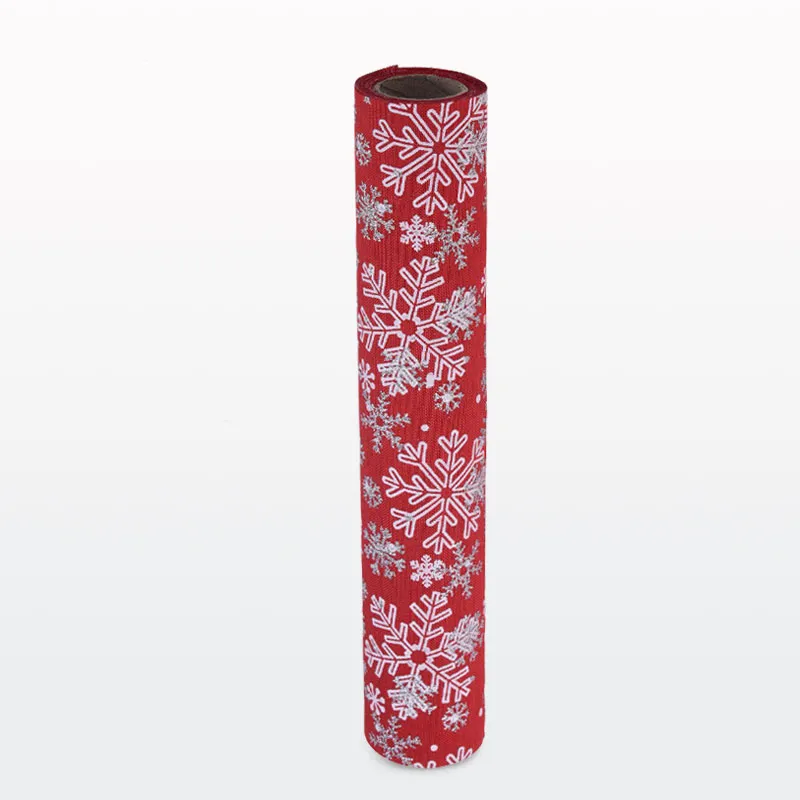 Luksuzna rdeča tkanina z vtisnjenimi belimi in srebrnimi drevesi ali vzorcem snežink za vse vaše božične dekoracije ali luksuzne darilne embalaže za večkratno uporabo.