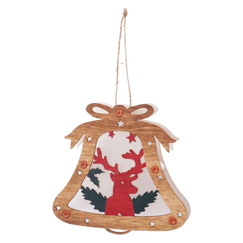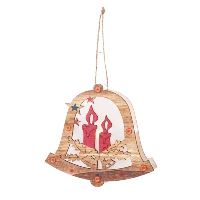 Obesek lesen, zvonček, z LED lučko, božični motiv, 13cm, sort.