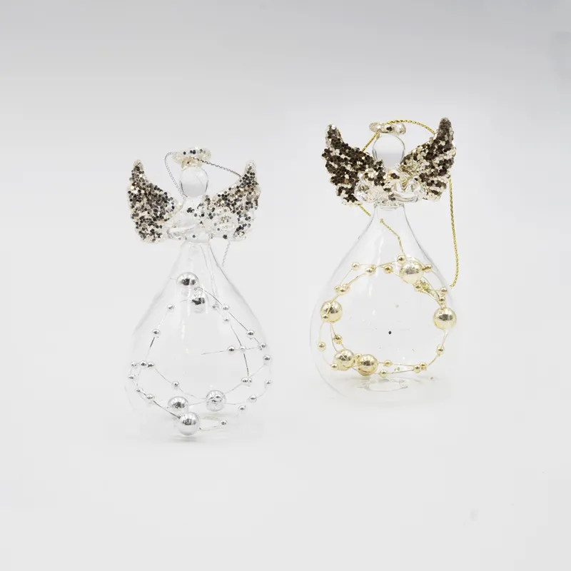 Angel steklen z bleščicami, 9cm, v embalaži, sort.