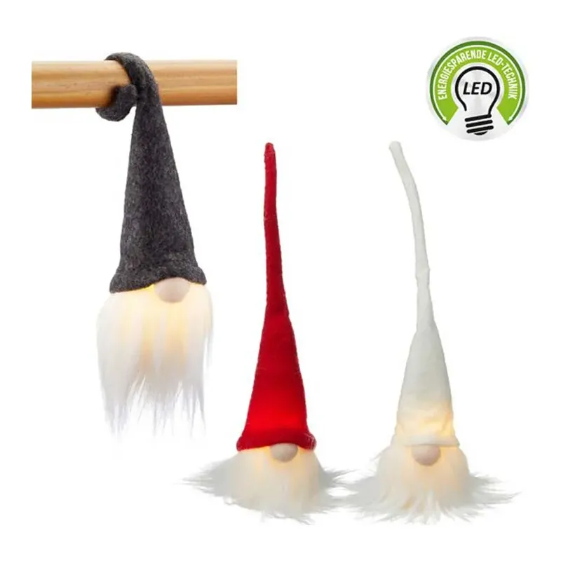 Božična dekoracija, palček z LED lučko, brez okic, 26cm, sort.