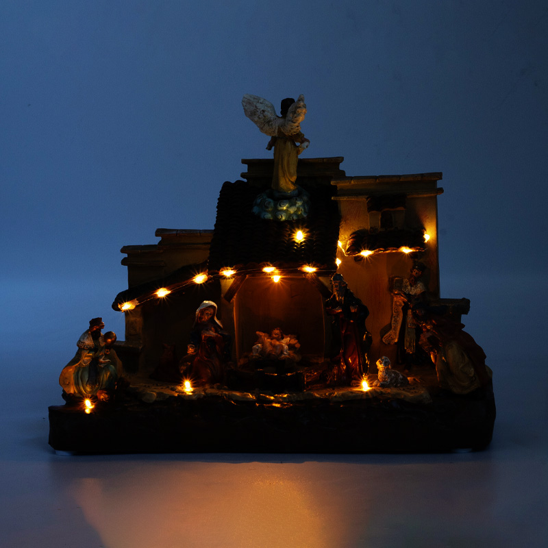 Jaslice, z LED lučkami in glasbo je prelepa in praznična dekoracija, izdelana iz polimase, ki bo prinesla božični čar v vaš dom. Mere jaslic so 32 cm v dolžino, 16 cm v širino in 25.5 cm v višino, zaradi česar so primerne za postavitev na polico, mizo ali