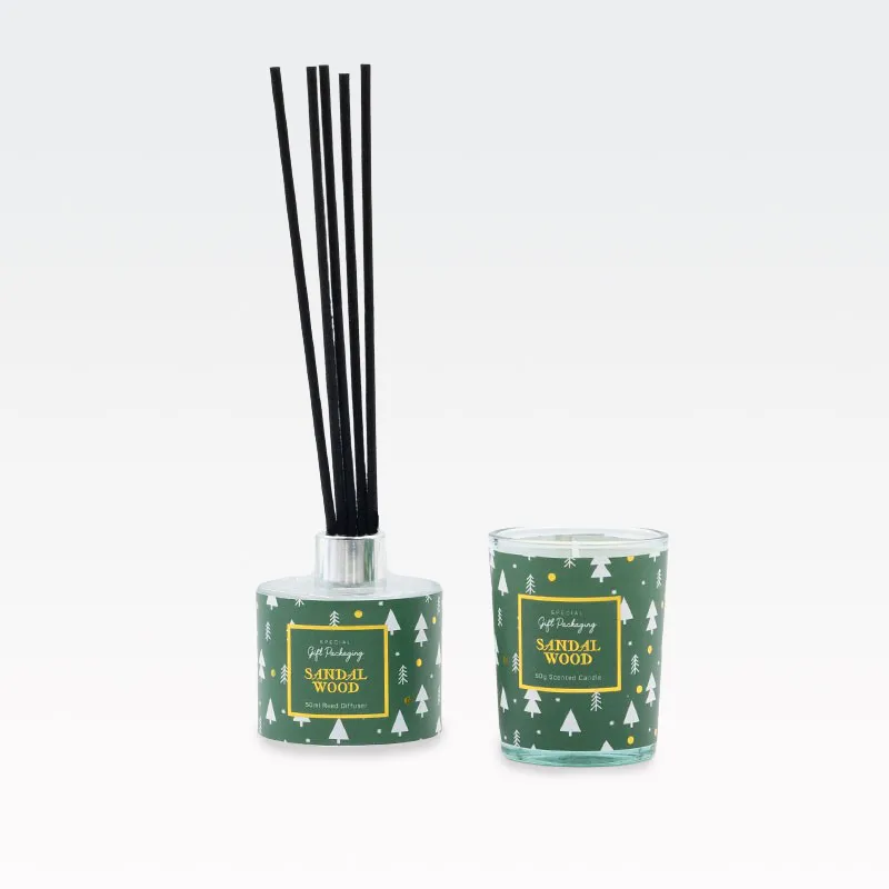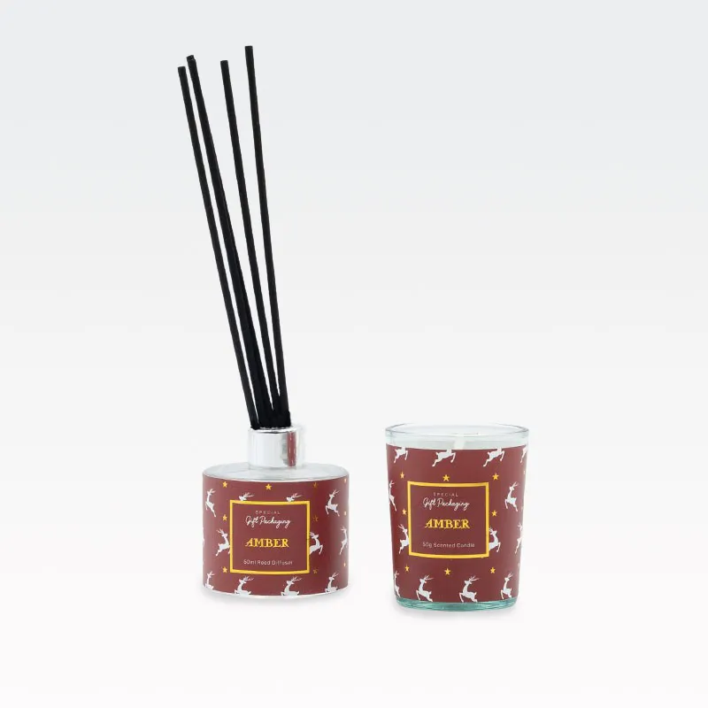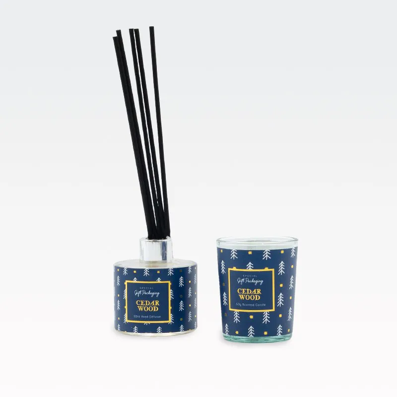 Set za aromaterapijo,božični, 2/1, sveča v steklenem kozarčku, 5x6cm in osvežilec s palčkami, 50ml