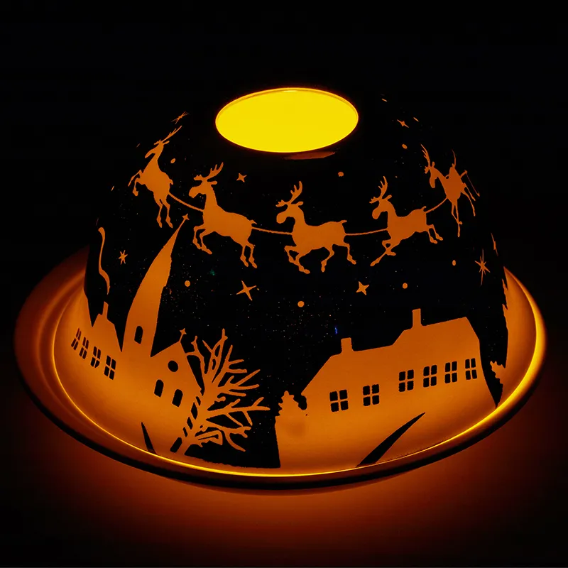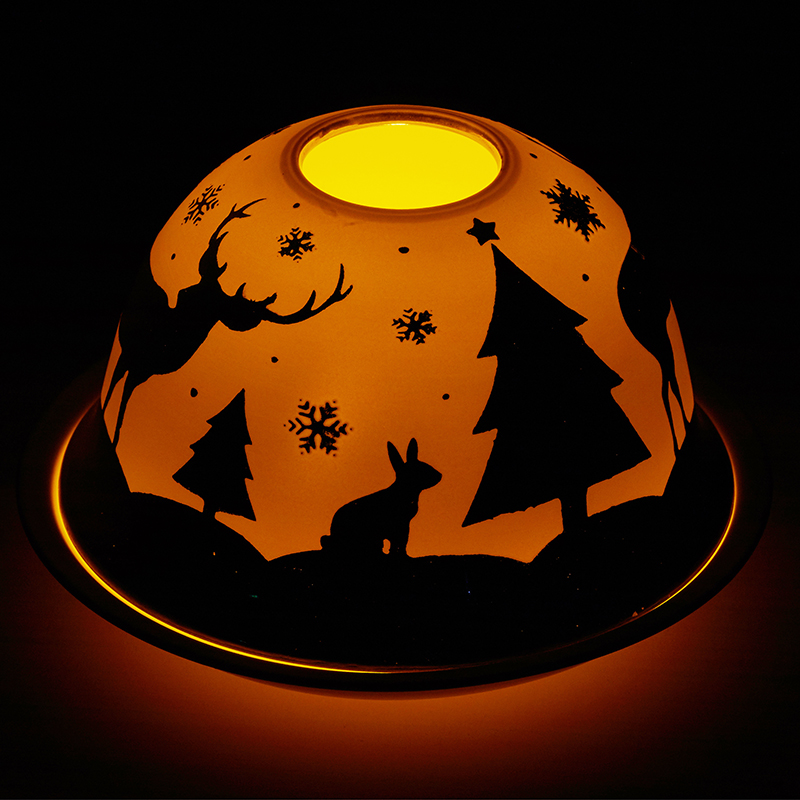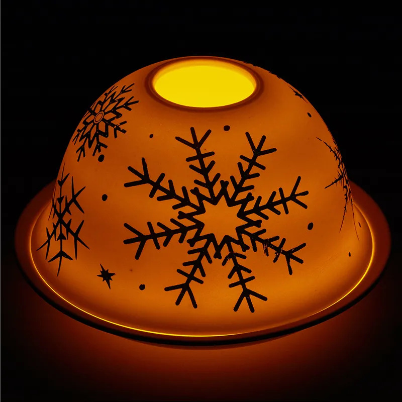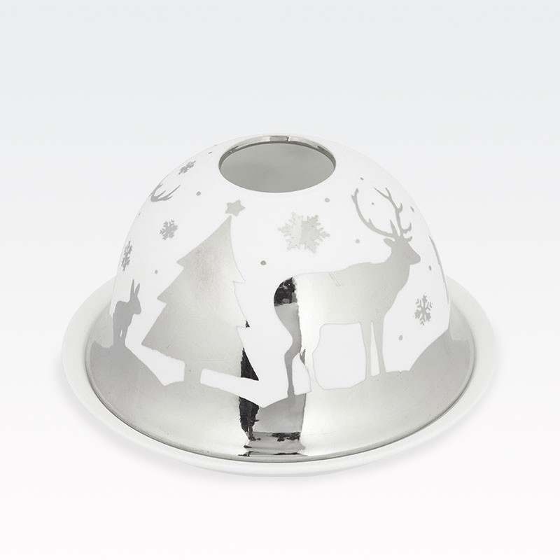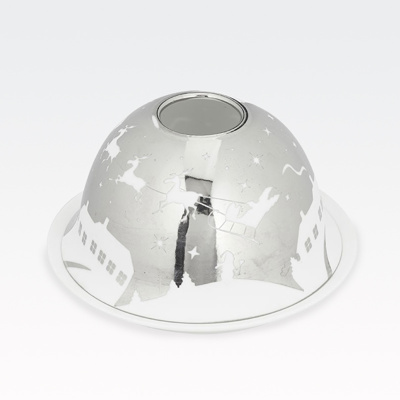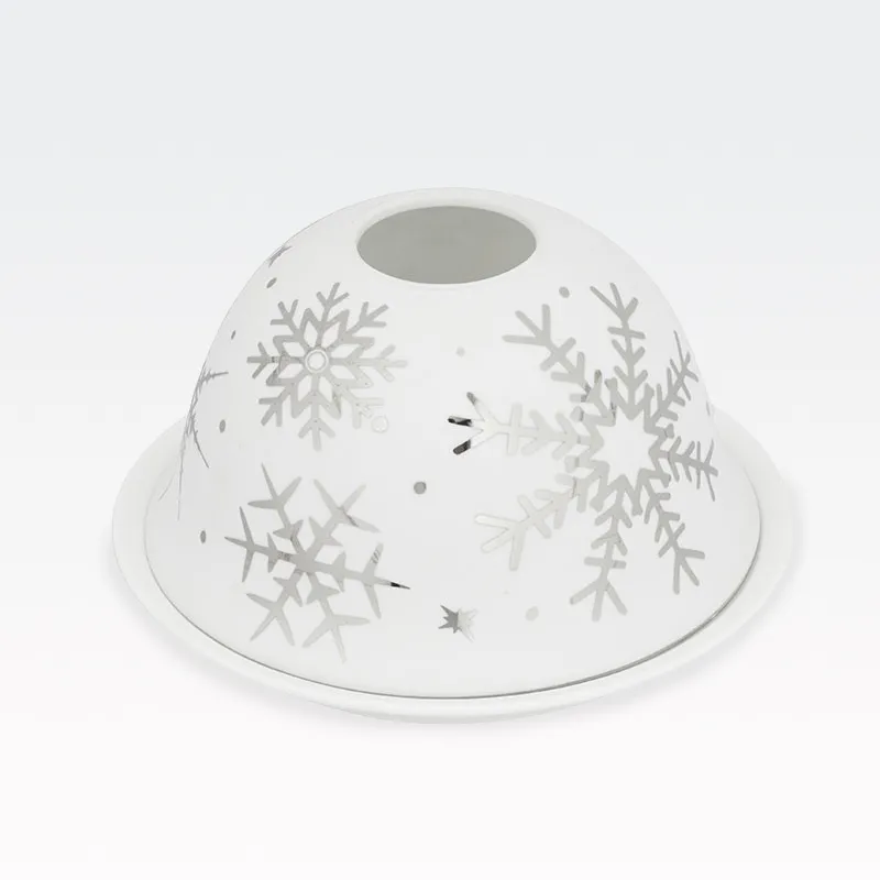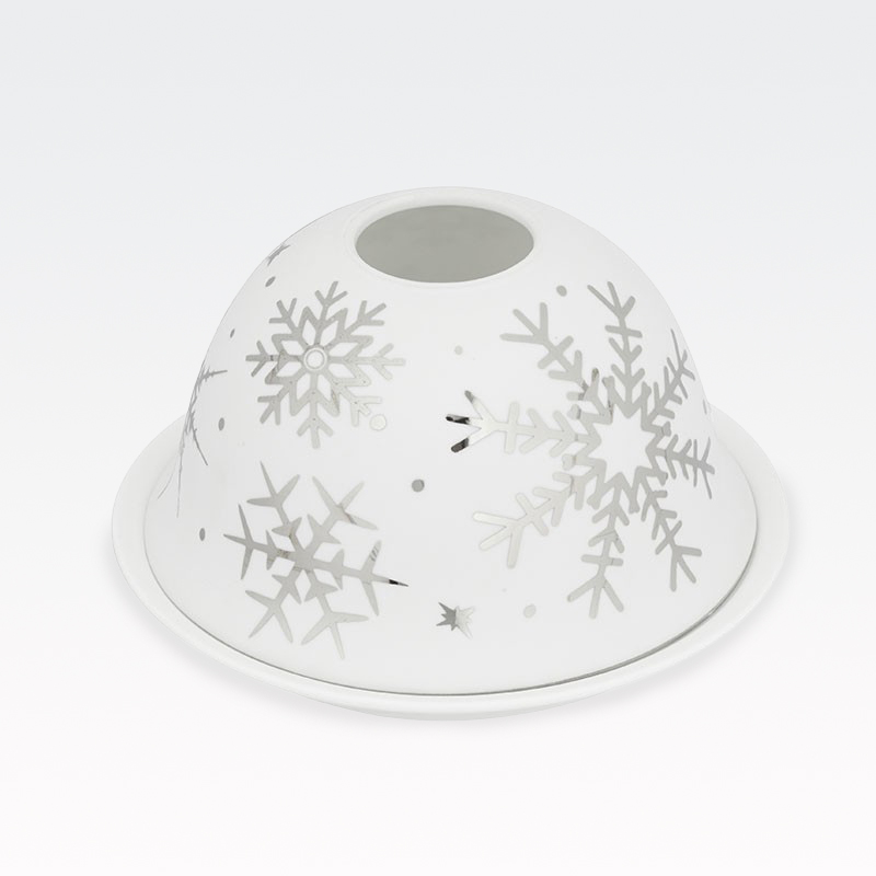 Svečnik za čajno lučko, bel/srebrn z božičnim motivom, keramika, 9.5x11.5cm, sort.
