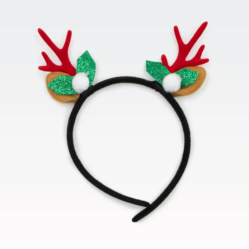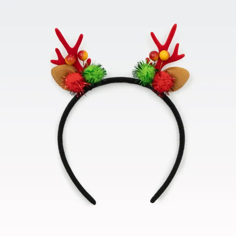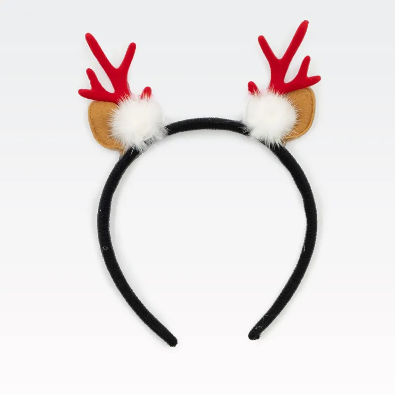 Trak naglavni, božični motiv, črn, jelenčkovi rogi, poliester, sort.
