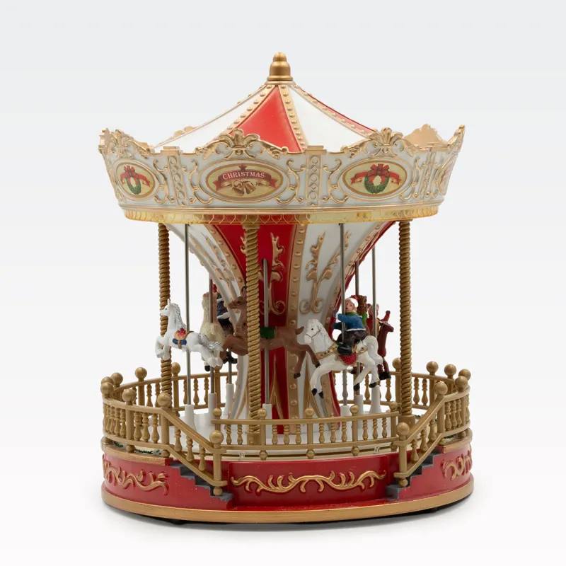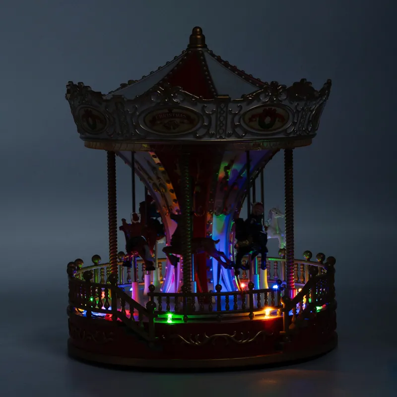 Vrtiljak božični, z LED lučkami in glasbo, polimasa, na baterije/USB, 23x23x23cm
