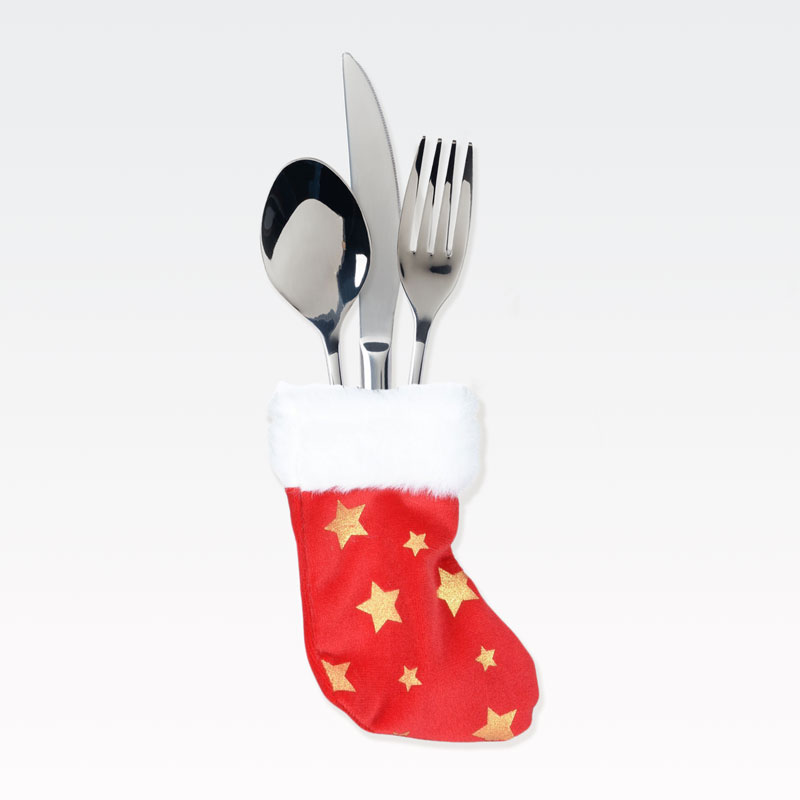 Ta božična kapa/nogavica za pribor je čudovit praznični dodatek za vašo božično mizo. Izdelana je v prazničnih barvah in ima dolžino približno 14 cm. Ta izdelek je lahko uporaben in dekorativen hkrati.