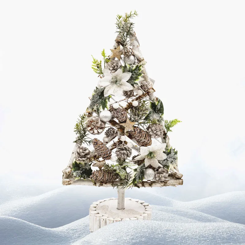Božična jelka bela, les, PVC, drugi naravni materiali, 30x8x56cm