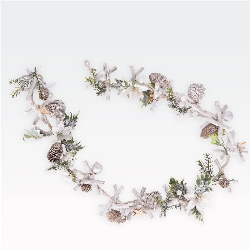 Girlanda božična, bela, naravni material, PVC, 165cm