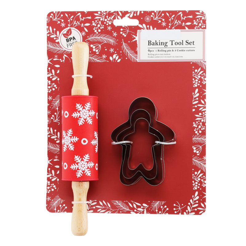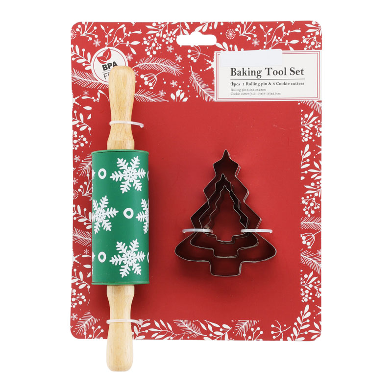 Prečudoviti božični set za peko božičnih piškotov. Vse kar potrebujete za praznično peko. Lahko je tudi kot darilo pod smrečico. V setu dobite majhen vajlar in modelčke. Božične kekse lahko naredite iz motiva smrečiče ali piškota