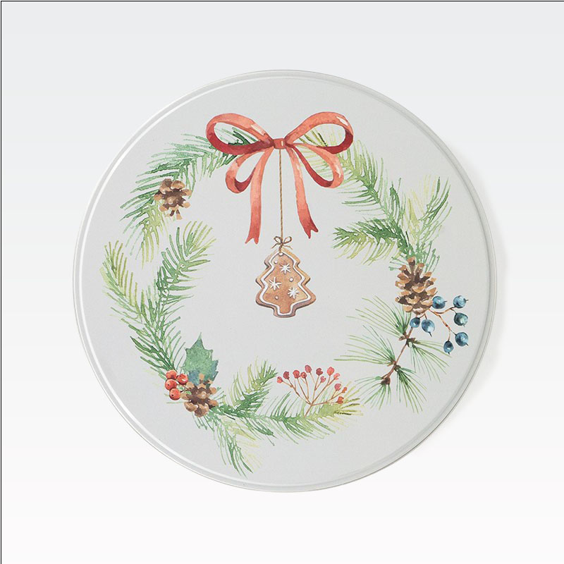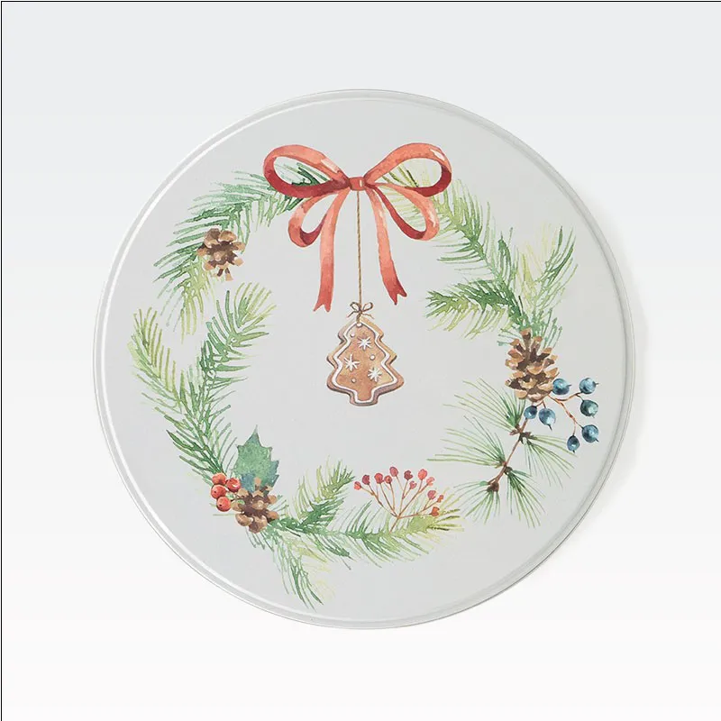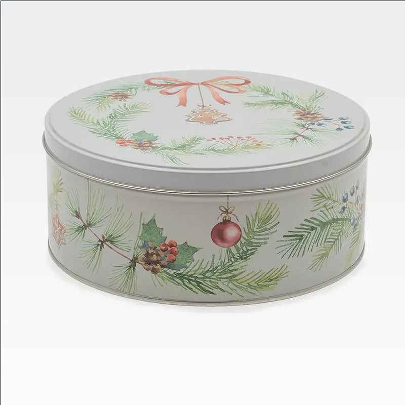 Novoletne kovinske škatle so primerne za shranjevanje piškotov. Dopolnjuje jih idiličen novoletni motiv.