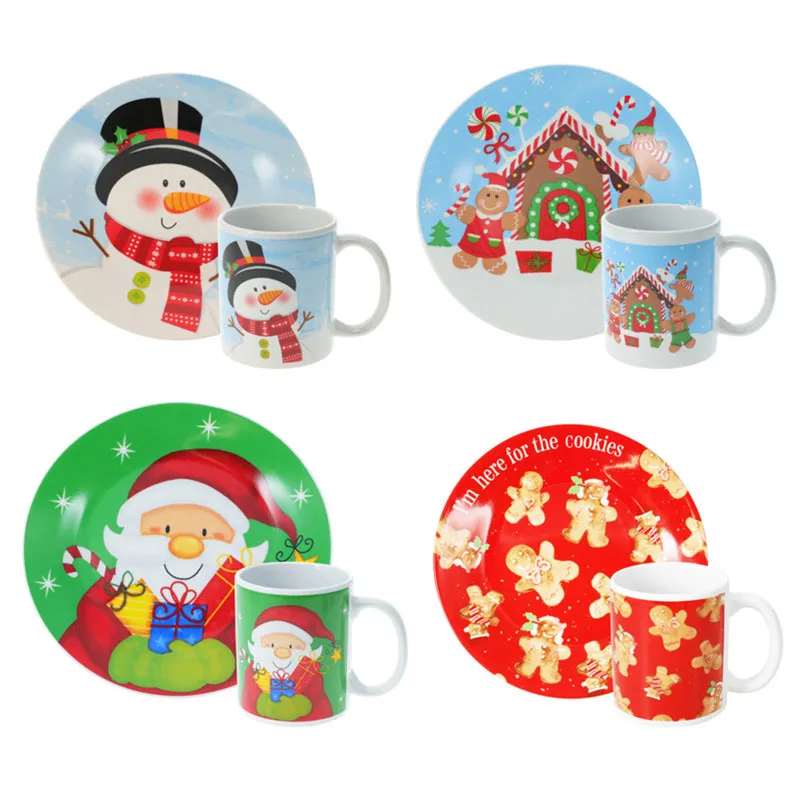 Set skodelice 325ml in krožnika 20cm, božični motiv, kamenina, sort.