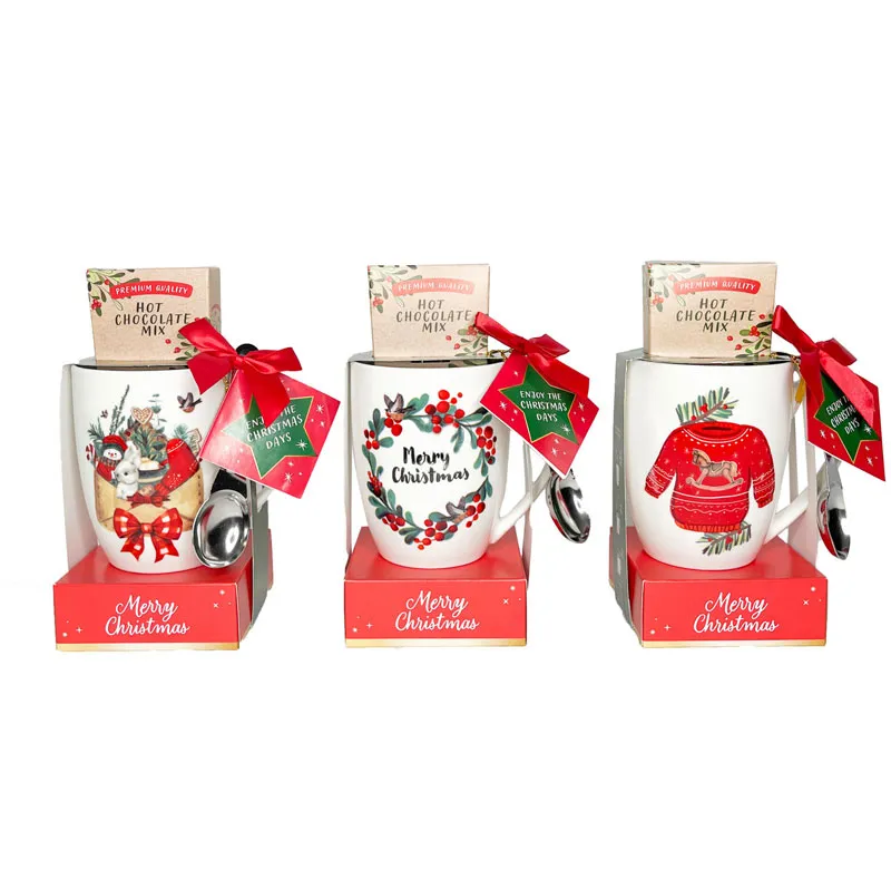 Skodelica keramična, božični motiv 10cm, z žličko + vroča čokolada 20g, sort.