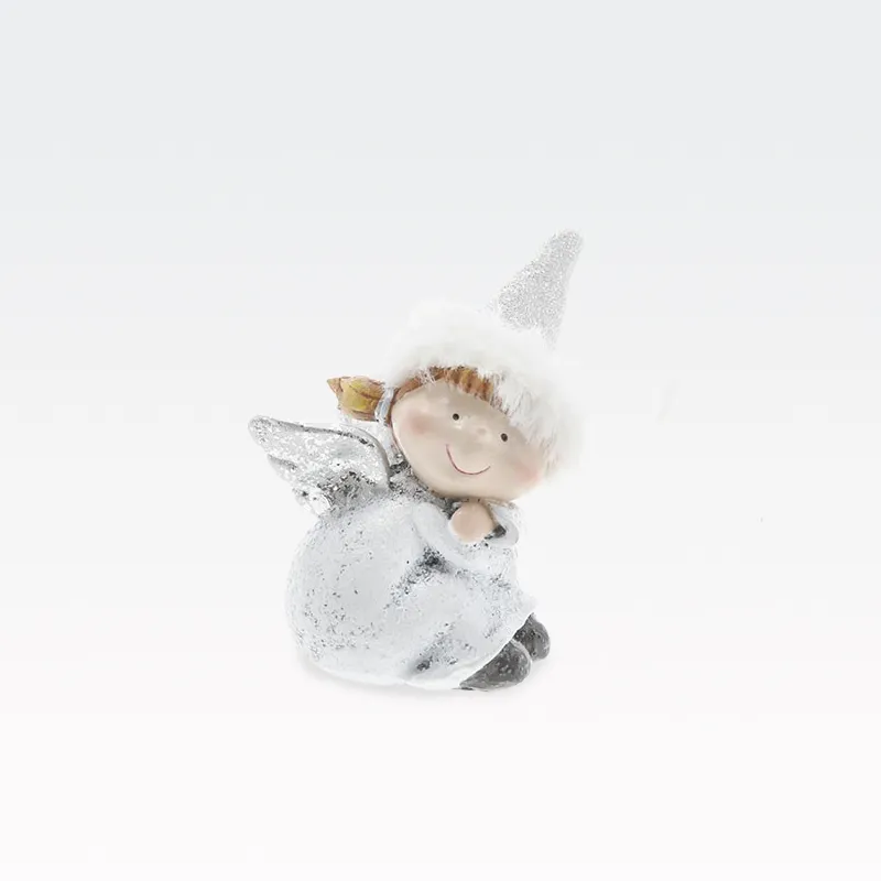Ta čudovit angelček, ki sedi in nosi toplo kapo, je čarobna božična dekoracija, ki bo prinesla pridih nebeškega vzdušja v vaš dom med prazničnim obdobjem. Vsak angel je izdelan iz kakovostnega materiala polimase, ima višino