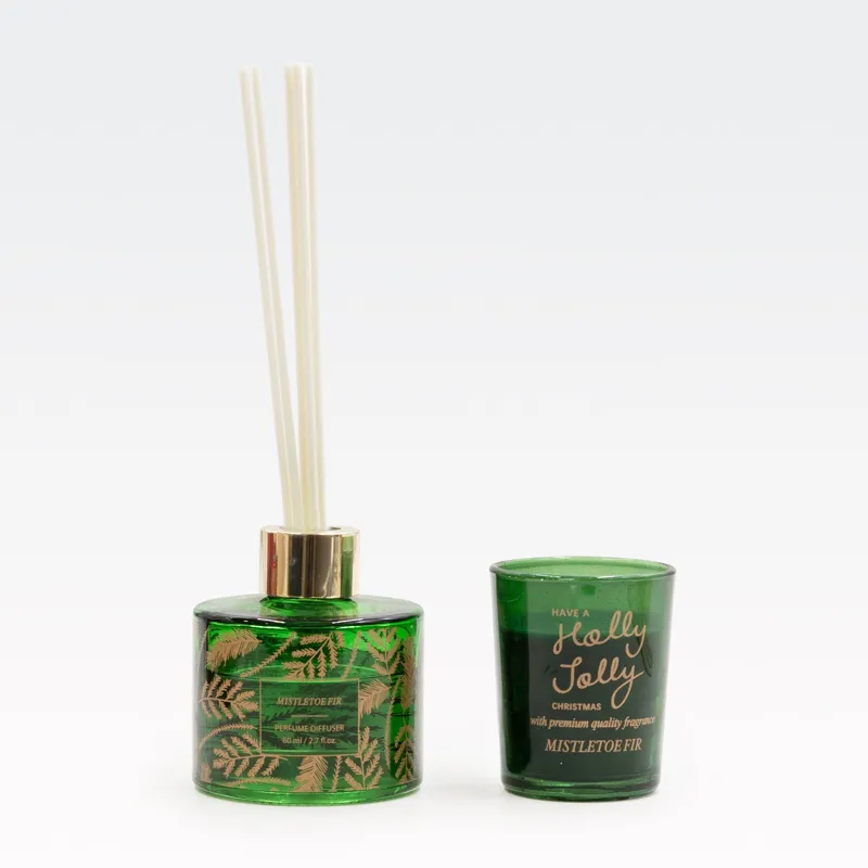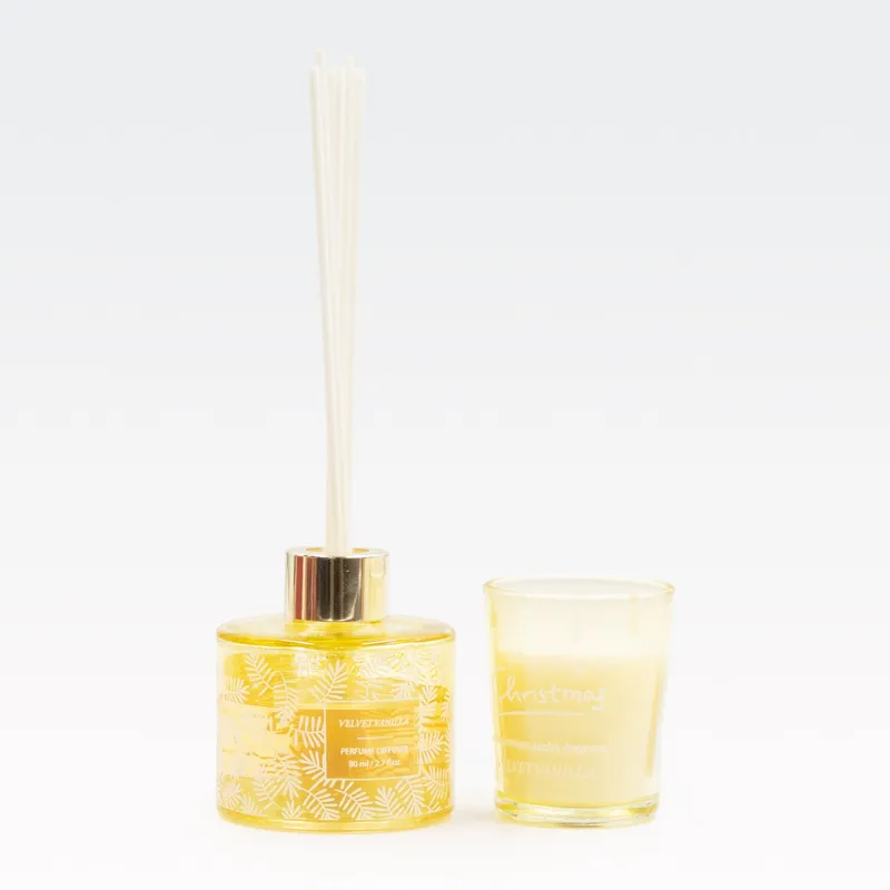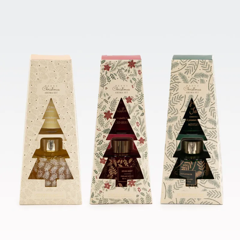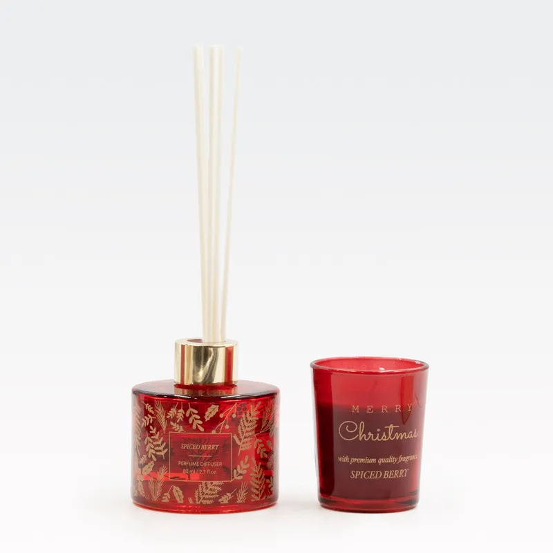 Aroma set božični, svečka, 60g in osvežilec zraka s palčkami, 80ml, sort.