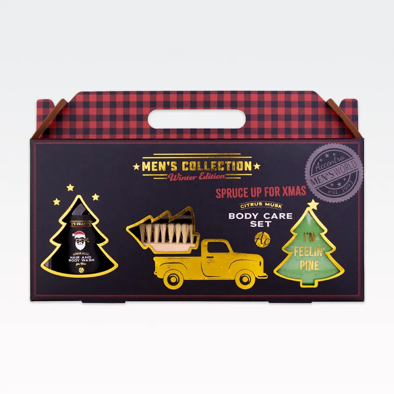 Darilni set za moške MEN'S COLLECTION WINTER EDITION, božični, (100ml šampon za lase in telo, 100g trdo milo, krtačka za nohte), z vonjem Citrus Musk, v darilni škatli