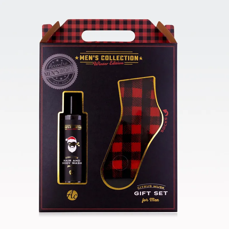 Darilni set za moške MEN'S COLLECTION WINTER EDITION, božični, (150ml šampon za lase in telo, 1 par nogavic - UNI velikost), z vonjem Citrus Musk, v darilni škatli