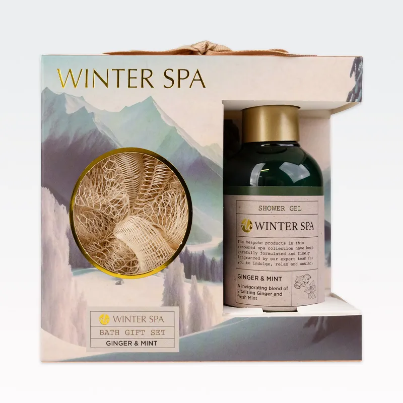 Kopalni set WINTER SPA, (150ml gel za tuširanje, 20g gobica za telo), z vonjem Ginger & Mint, v darilni škatli