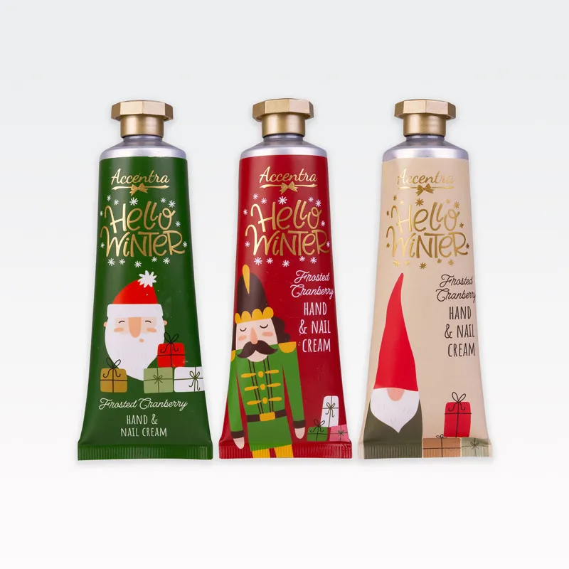 Krema za roke in nohte HELLO WINTER, božična, 60ml, z vonjem Frosted Cramberry, sort.