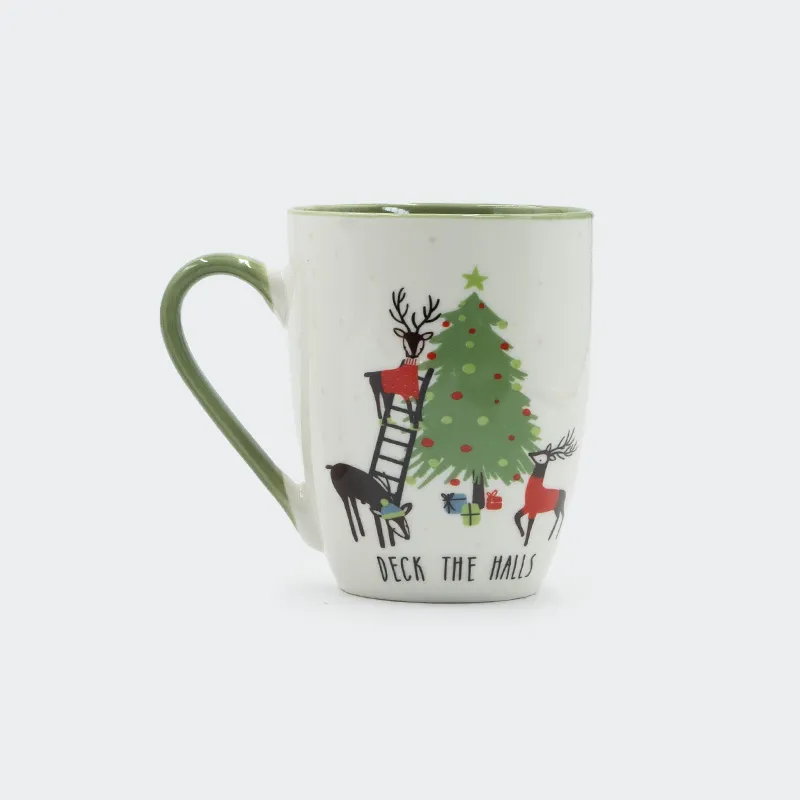 Lonček, božični, bel, različni motivi, porcelan, 8.3*10.3*7c, sort.