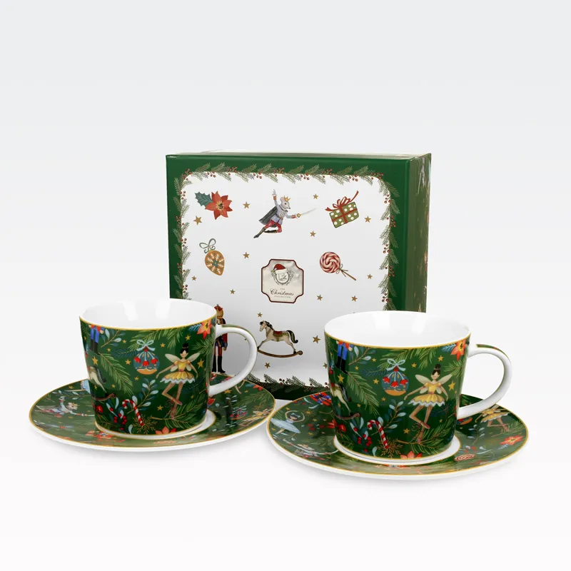 Set 2 skodelic s podstavkom, božični motiv, v darilni embalaži, CHRISTMAS SPIRIT, 250ml, new bone, 7cm