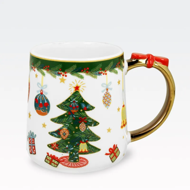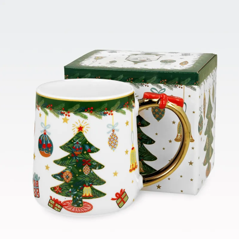 Skodelica božični motiv, v darilni embalaži, AROUND CHRISTMAS TREE, 450ml, new bone, 9.5cm