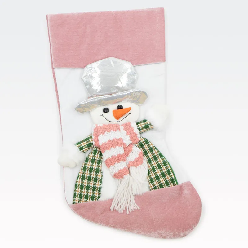 Nogavica božična, dekorirana - snežak, roza/bela, poliester, 32x45cm