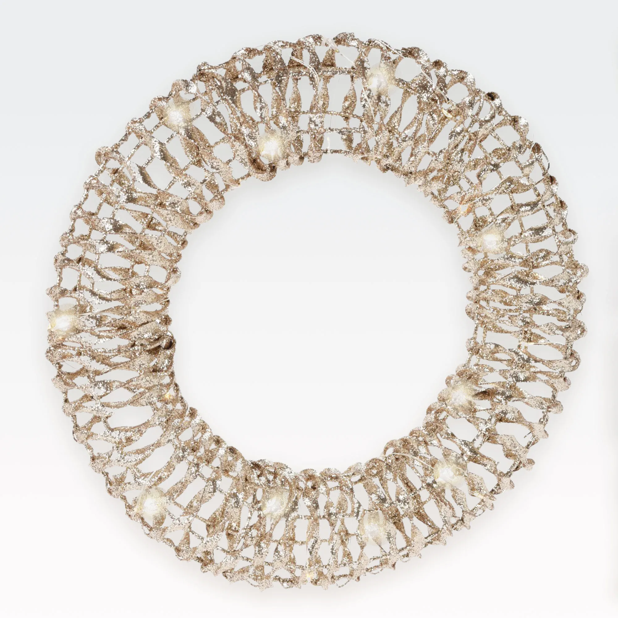Božični venec zlat, 20 LED, na baterije, 30cm