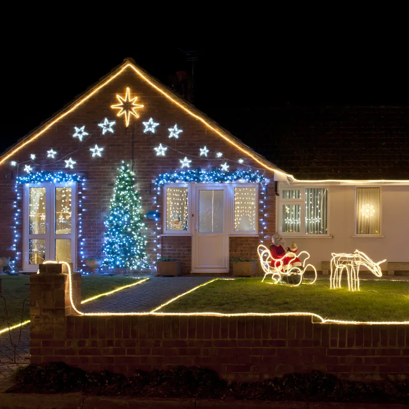 Ta 9 metrov dolga cevna razsvetljava je večnamenska. Pritrdite ga na balkon, okoli okna in ustvarite čarobno božično vzdušje. Ta osvetlitev poskrbi tudi za vzdušje na vrtu. Število LED: 216 energijsko učinkovitih LED sijalk (3V