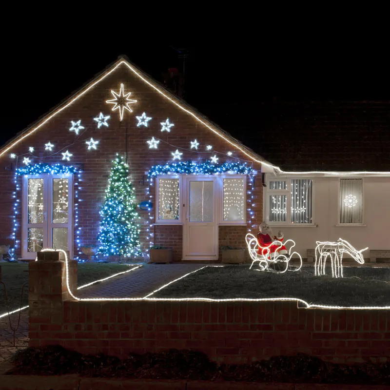 Ta 9 metrov dolga cevna razsvetljava je večnamenska. Pritrdite ga na balkon, okoli okna in ustvarite čarobno božično vzdušje. Ta osvetlitev poskrbi tudi za vzdušje na vrtu. Število LED: 216 energijsko učinkovitih LED sijal