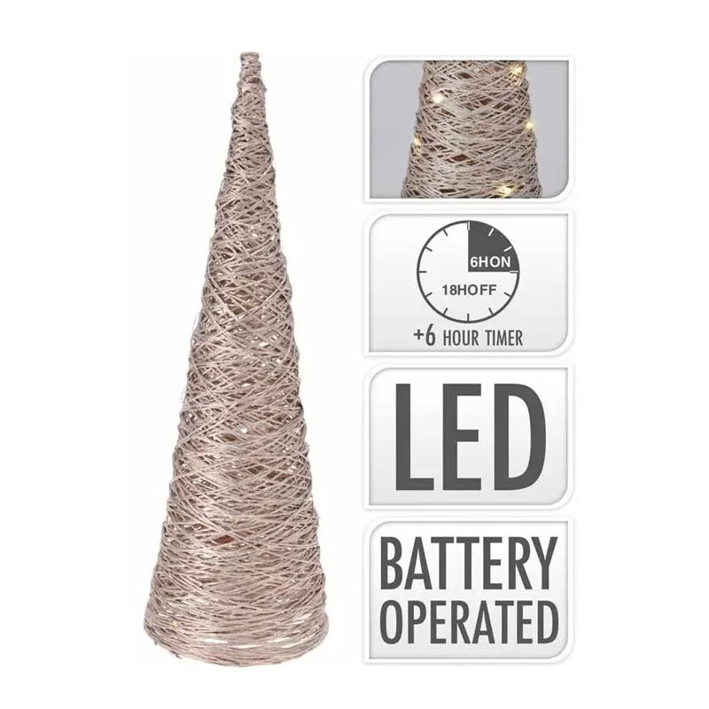 Stožec bronast, rafia, z LED lučkami, 20LED, 40cm