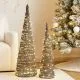 Stožec z biserčki, rjav ratan, z LED lučkami, 40LED, 80cm
