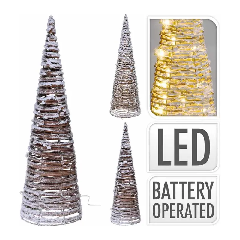 Stožec zasnežen, rjav ratan, z LED lučkami, 80cm, sort.