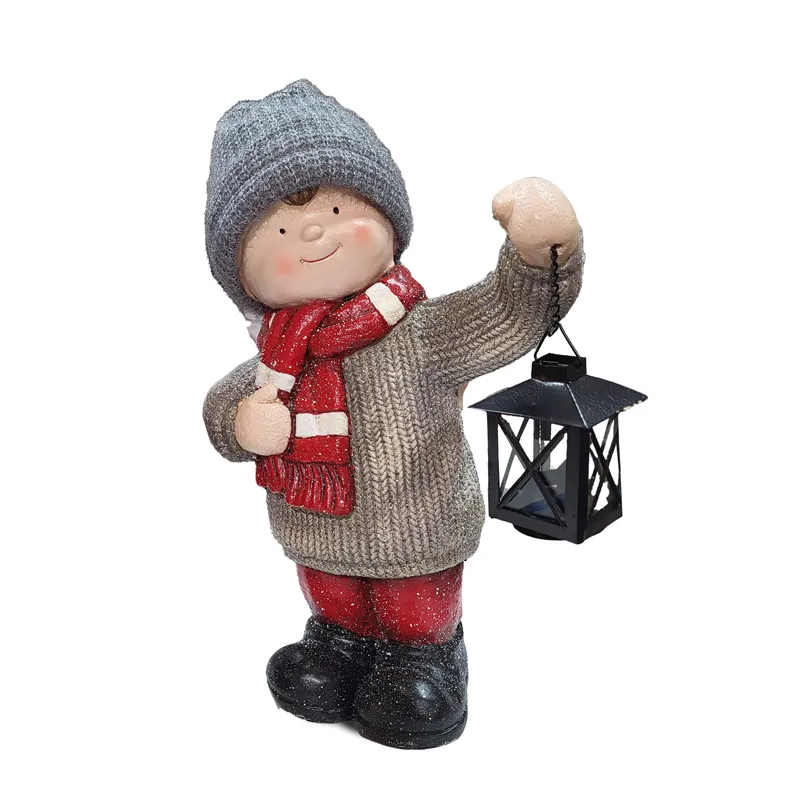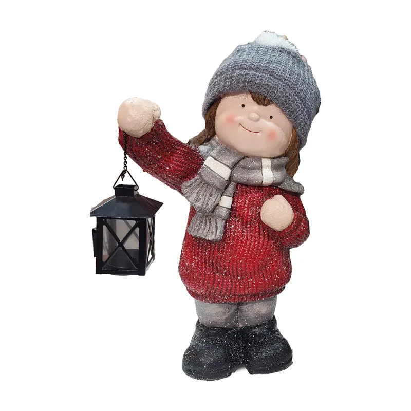 Punčka/fant z zimsko kapo, z laterno za čajno lučko, polimasa, 25x16x42cm