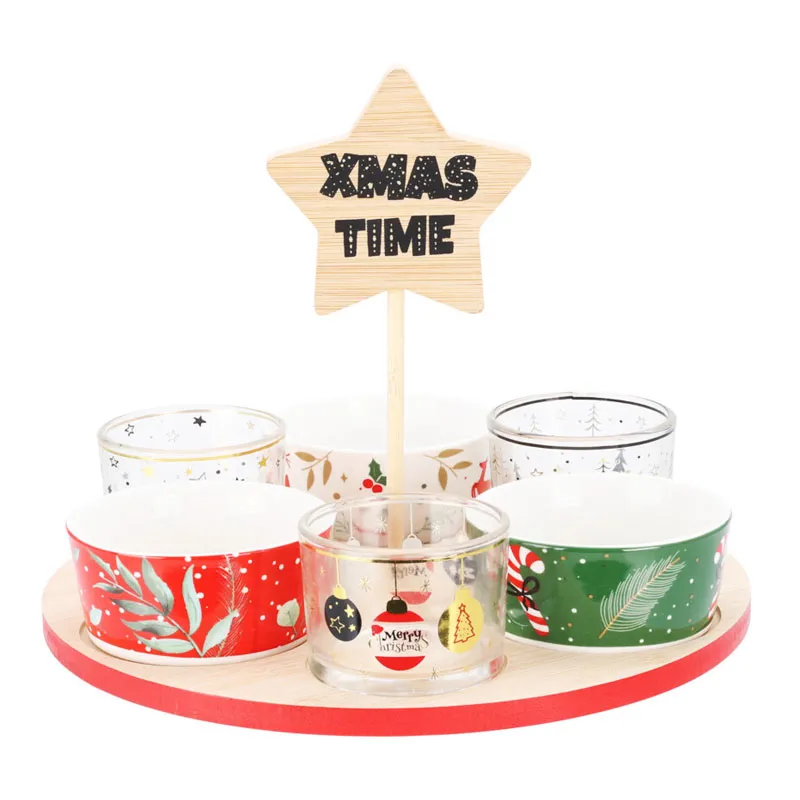 Set različnih servirnih skodelic s prazničnim motivom in pladnjem je popoln komplet za praznično postrežbo slaščic, prigrizkov ali toplih napitkov. Skodelice so okrašene z ljubkimi božičnimi motivi, kot so smrečice, zvezdice, snežaki ali Božički, ki ustvarjajo toplo praznično vzdušje. Priložen pladenj iz trpežnega materiala omogoča enostavno in elegantno postrežbo. Popoln dodatek za praznično mizo ali kot lepo darilo za ljubitelje božičnih detajlov.