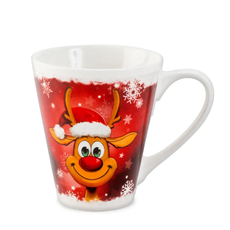 Božična skodelica iz keramike z motivom jelenčka Rudolfa je prikupen dodatek, ki v prazničnem času pričara nasmeh in toplino. Izdelana je iz kakovostne keramike, primerna za vroče napitke, kot so čaj, kava ali kakav. Motiv slavnega Rudolfa s svetlečim rdečim noskom poskrbi za pravo božično vzdušje in je odlična izbira za darilo ali vsakodnevno uporabo v prazničnih dneh.