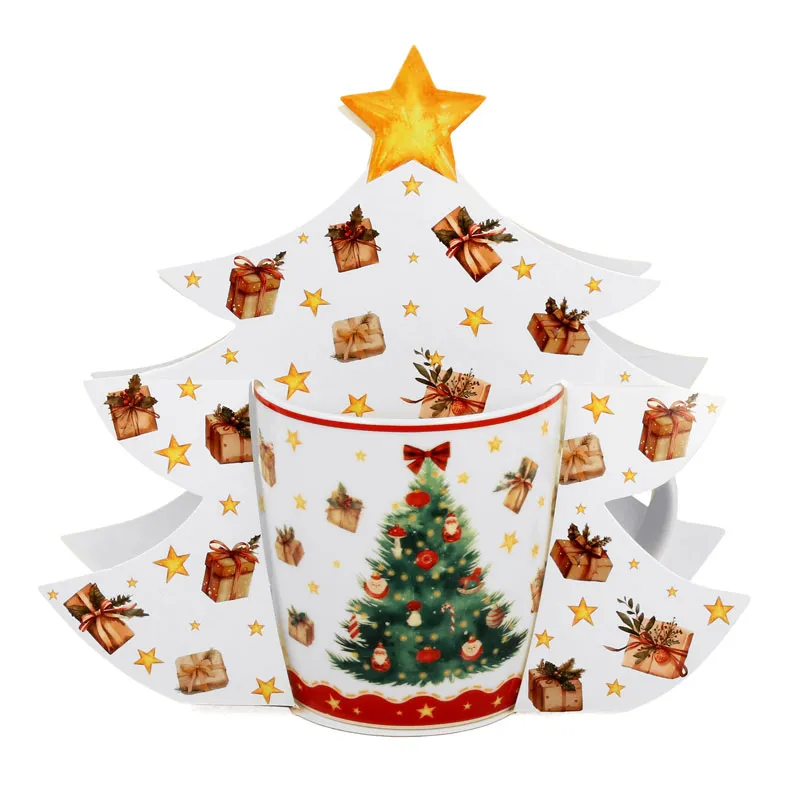 Skodelica božični motiv, CHRISTMAS TREE, v darilni embalaži v obliki smrekice, 400ml, new bone, 9.3cm