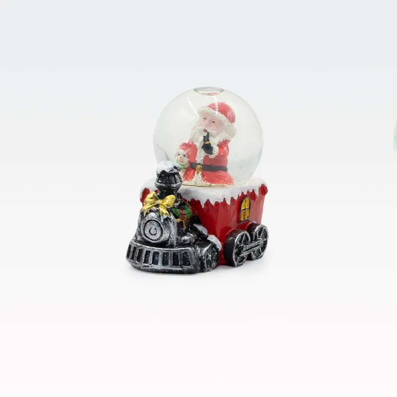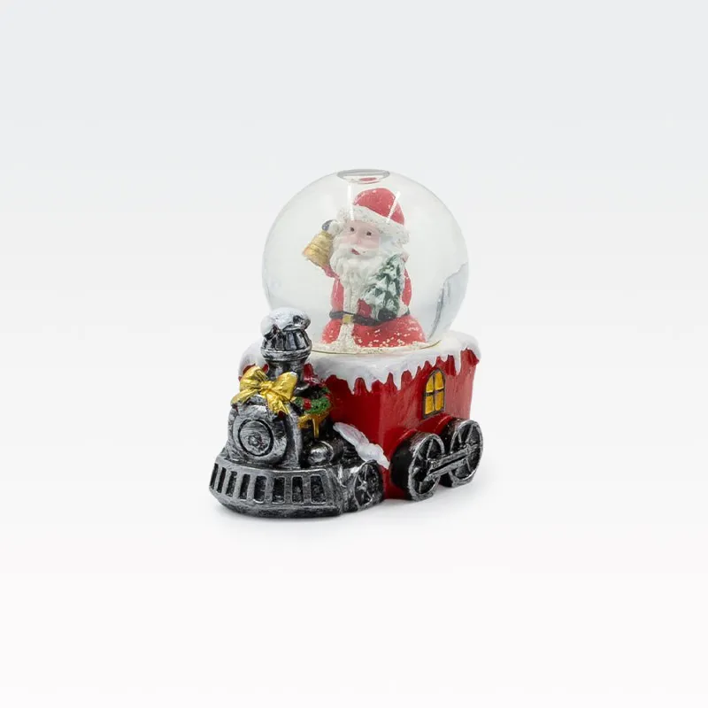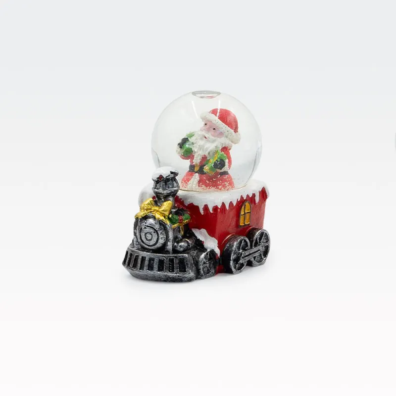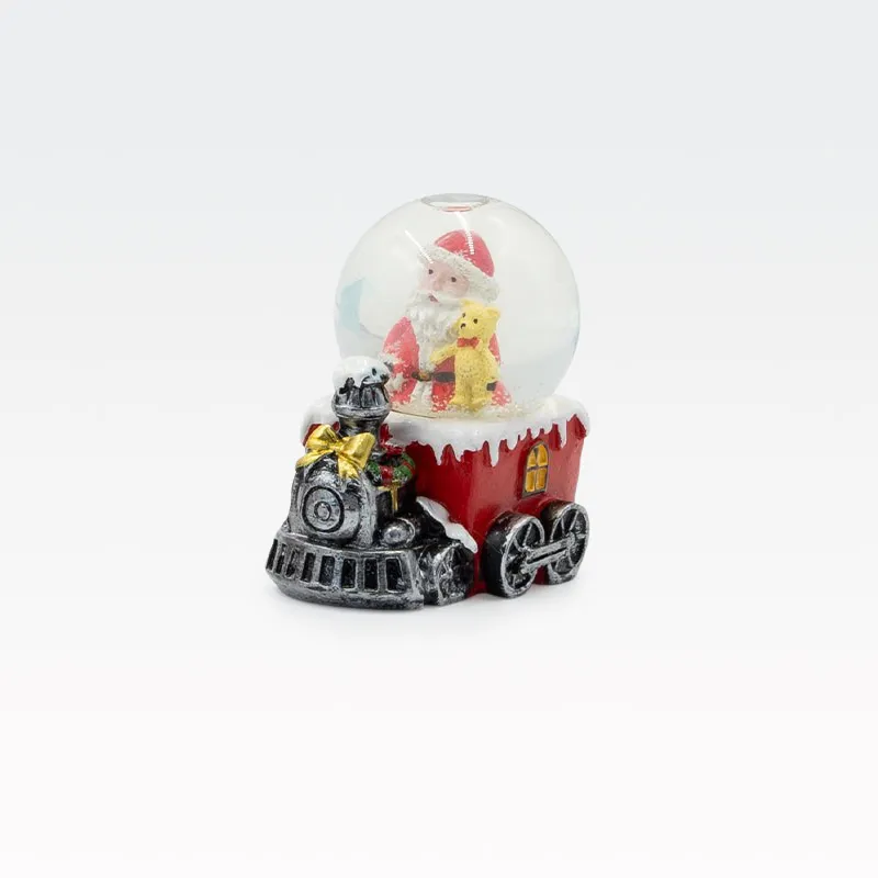 Snežna krogla, božiček na vlakcu, polimasa, 7x6x5cm, sort.