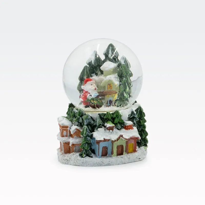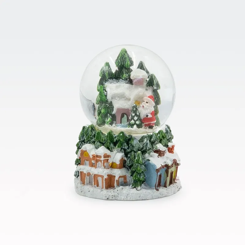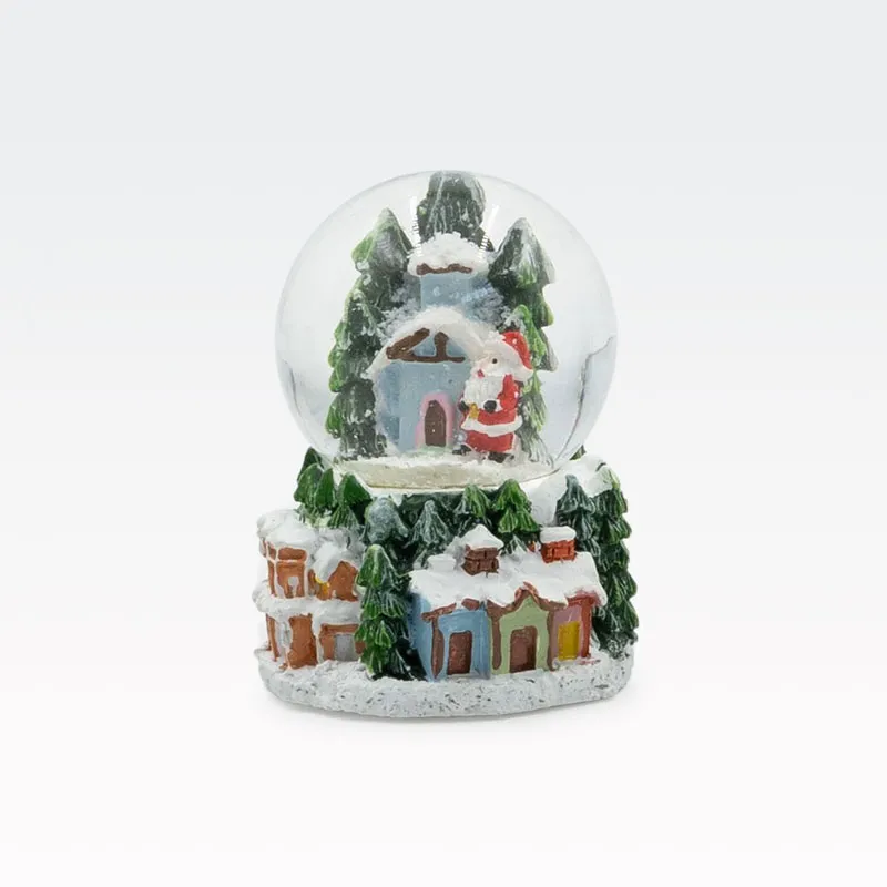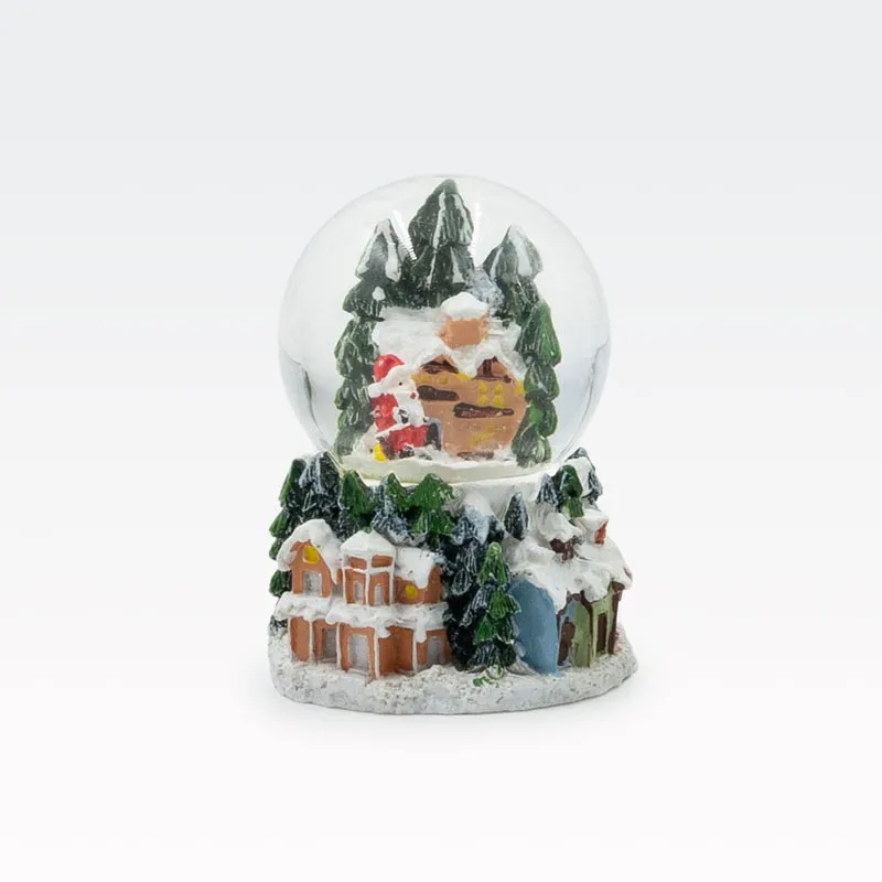 Snežna krogla, božiček s hiško na vzpetini, z LED lučko, polimasa, 4.5x4.5x7cm, sort.