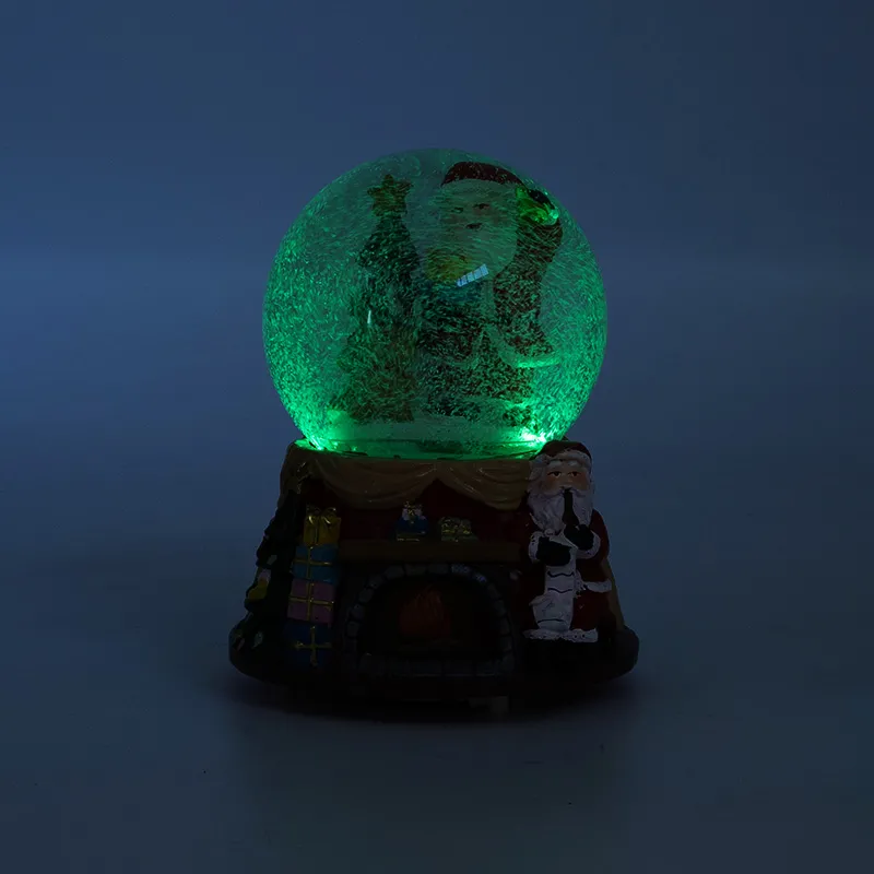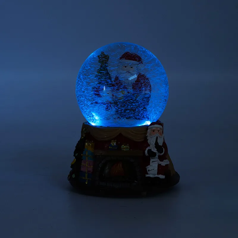 Snežna krogla, božiček z božično smreko in darili, z LED lučko, sneženjem, ter glasbo, polimasa, 10.5x10.5x14.5cm, sort.