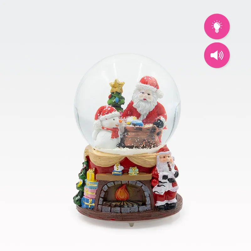 Snežna krogla, božiček z božično smreko in darili, z LED lučko, ter glasbo, polimasa, 9x9x12cm, sort.