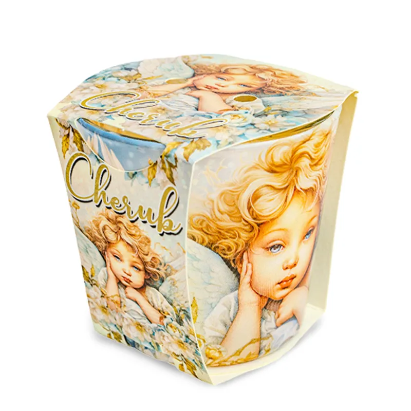 Sveča v steklenem kozarcu ANGEL, cherub, vonj lady million, 8.2cm